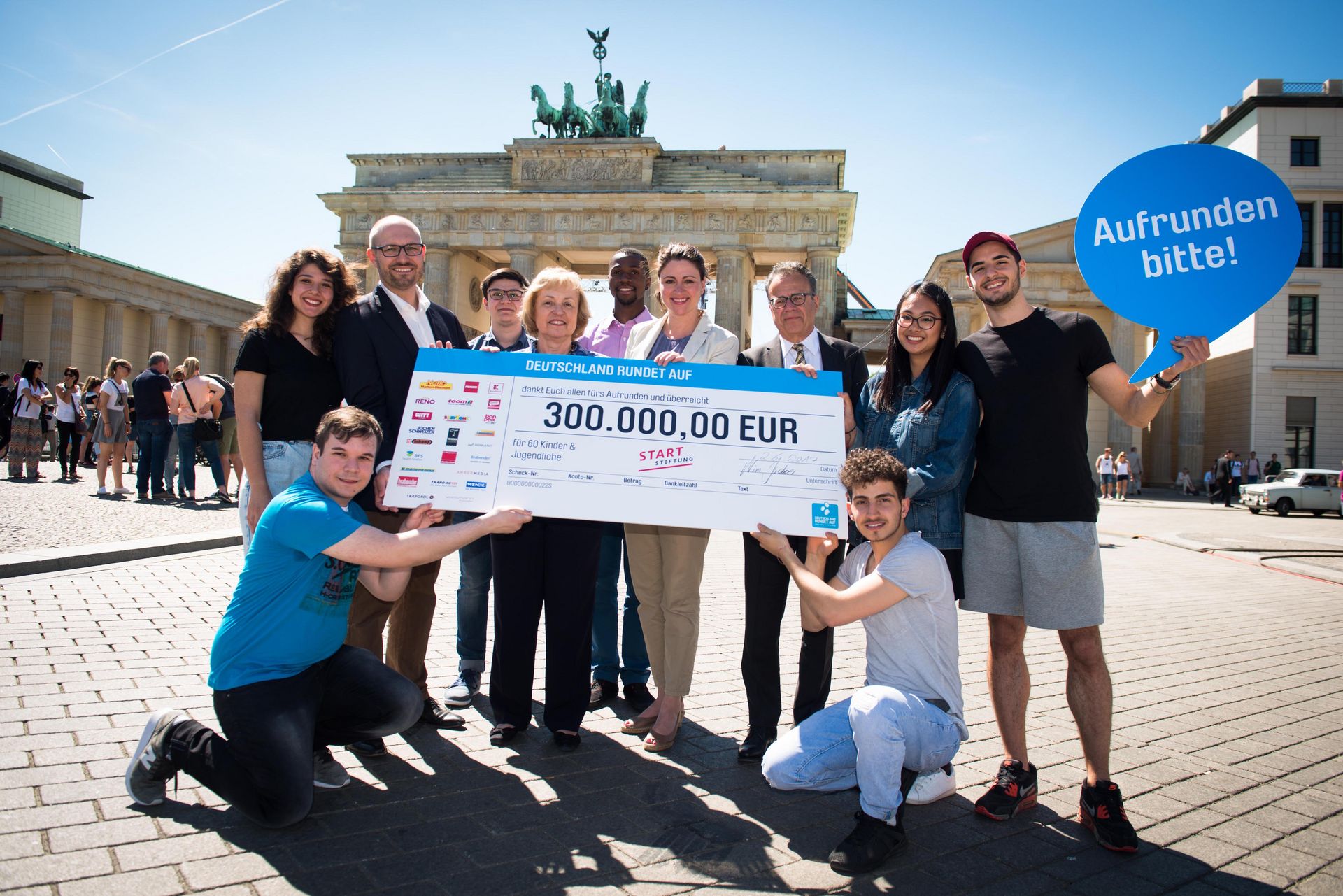 ‚Deutschland rundet auf’ hat das Ziel, faire Chancen für alle Kinder in Deutschland zu schaffen. Die gemeinnützige Spendenbewegung ermöglicht allen Menschen, sich mit Mikrospenden für sozial benachteiligte Kinder zu engagieren. Alle Spenden werden zu 100% an geprüfte, gemeinnützige Projekte in Deutschland geleitet, die Kinder und ihre Eltern durch Angebote wie frühkindliche Bildung, Mentoring- und Patenschaftsprogramme oder Elternbildung unterstützen. Seit Start im März 2012 wurde bereits über 143 Mio. Mal gespendet und mehr als 6,7 Mio. Euro gesammelt. Mehr als 61.344 Kinder erhalten dadurch Chancen auf eine bessere Zukunft. Den Scheck an die START-Stiftung überreichte die Spendenbewegung im Rahmen der ‚Woche der Kinder’, in der die Spendenbewegung gemeinsam mit Partnern und Organisationen bundesweit darauf aufmerksam machte, dass viele Kinder in Deutschland keine fairen Chancen haben.