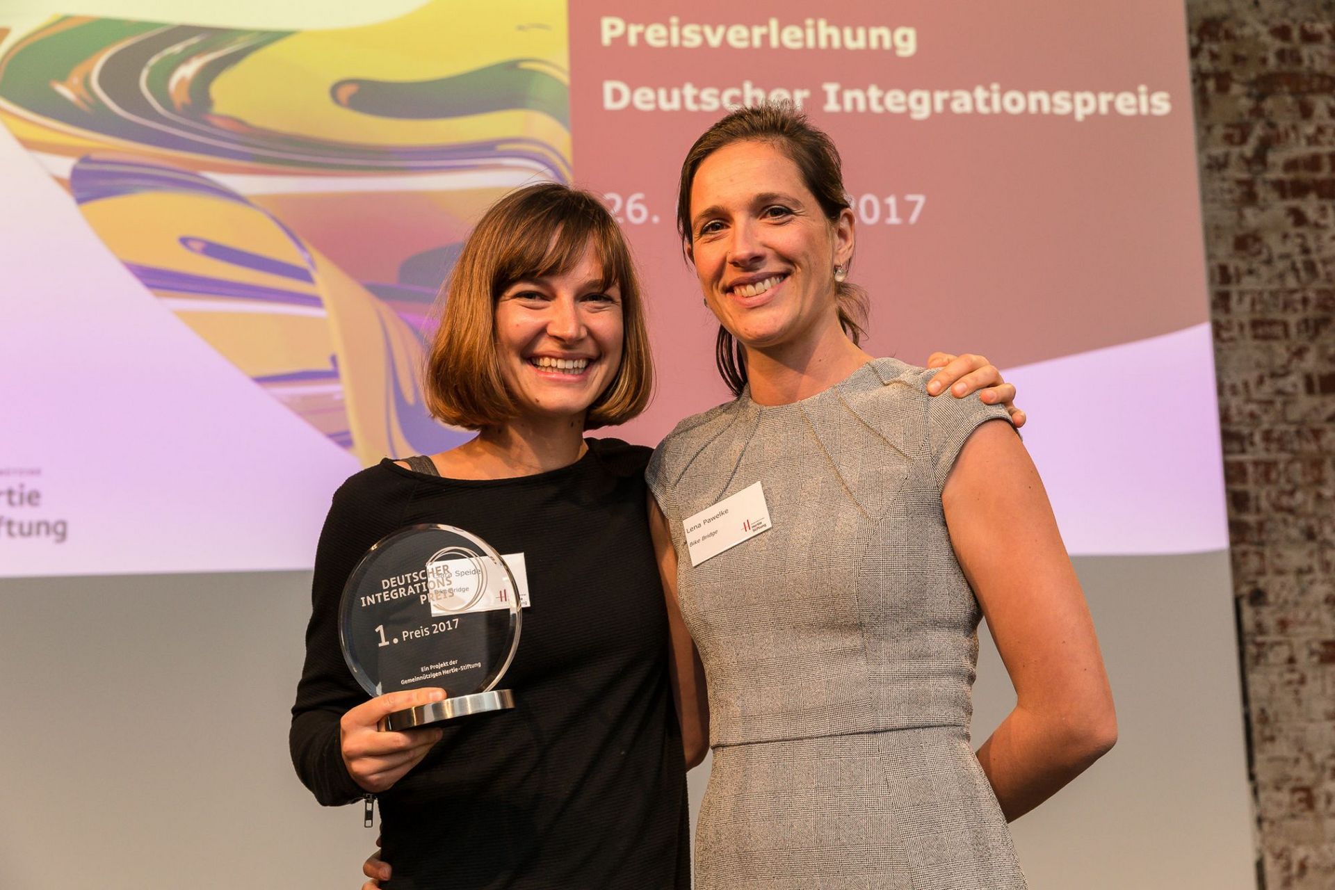 Frankfurt am Main, 26. Oktober 2017. Wie Integration erfolgreich gelingen kann, zeigt das Projekt Bike Bridge aus Freiburg, das den ersten Preis bei Deutschlands größtem Integrationswettbewerb gewonnen hat. Bei der heutigen Verleihung in Frankfurt am Main wurde das Projekt mit 50.000 Euro von der Gemeinnützigen Hertie-Stiftung ausgezeichnet. Damit würdigte die Jury die Erfolge bei der Integration von geflüchteten Frauen, denen sich Bike Bridge durch Fahrradkurse und Freizeitausflüge widmet. Für den Juryvorsitzenden Hans-Jörg Vetter, Vorsitzender des Kuratoriums der Hertie-Stiftung, ist diese Auszeichnung mehr als verdient: „Durch die soziale und kulturelle Integration durch Fahrrad fahren gewinnen geflüchtete und zugewanderte Frauen an Freiheit. Sie werden mobil und erfahren Teilhabe an unserer Gesellschaft, was sich wiederum positiv auf die Familien der Frauen auswirkt. Das Konzept ist zudem gut skalierbar, also einfach auf andere Regionen und Rahmenbedingungen übertragbar. Wir gratulieren dem Projekt ganz herzlich zum ersten Preis und wünschen allen Beteiligten weiterhin viel Erfolg!“